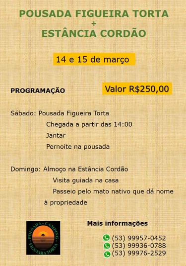Aproximadamente 20 quilômetros da Estância do Cordão encontramos a Pousada Figueira Torta, um ótimo lugar para relaxar. Assista o vídeo abaixo e saiba mais.
